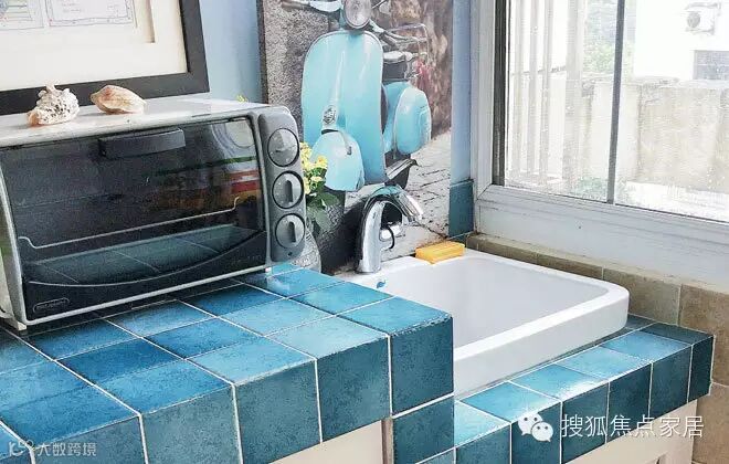 蓝色的瓷砖跟地中海风格很搭。