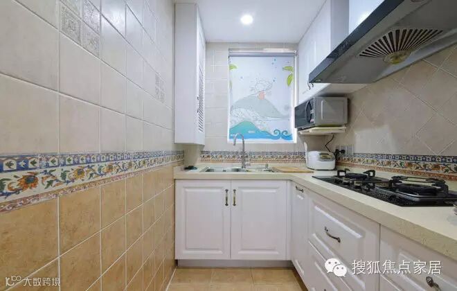 米色美式小砖配白色橱柜,这样的空间一定能烹饪出非常美味的食物。