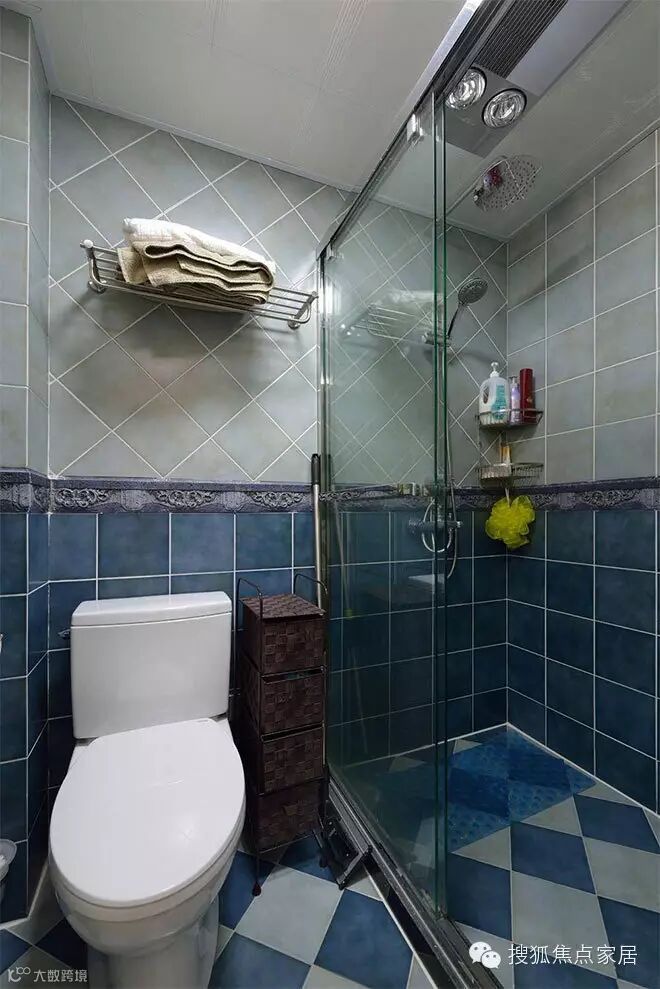 深蓝加浅蓝的搭配,让小小的卫生间也有美感。