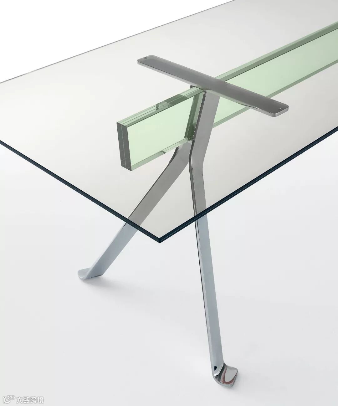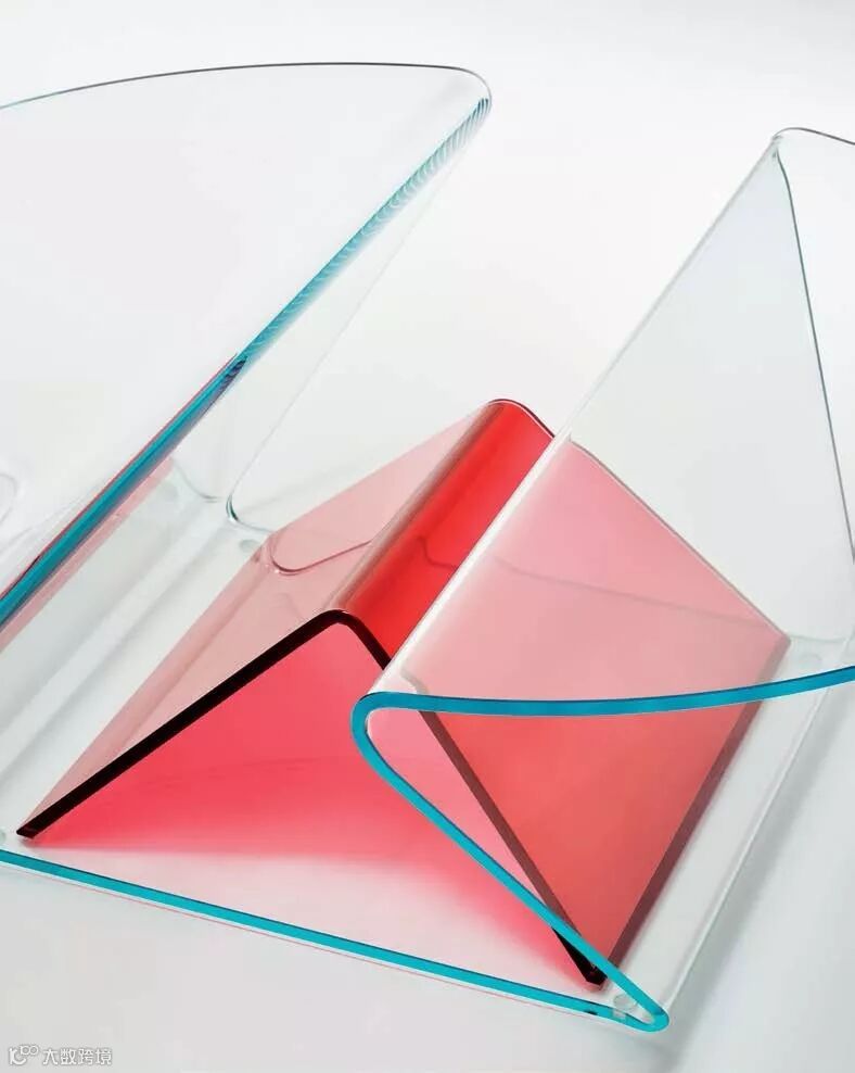 MARI CRISTAL采用特殊且罕见的表面处理,以超轻玻璃光束连接,由中性透明表面或独特的透明彩色饰面创造出意想不到的变化。