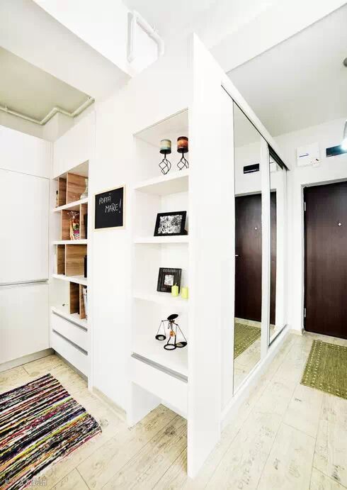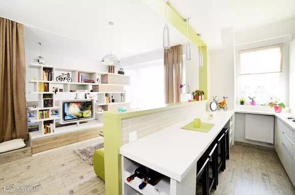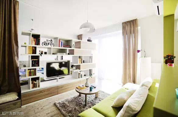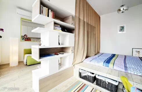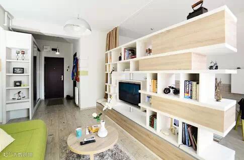 这个小公寓只有40平米,室内采用了米色、棕色、绿色等多种色调,所有家具都是定制的,大部分的存储空间巧妙地隐藏了,让空间显得宽敞大气。