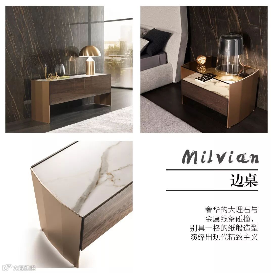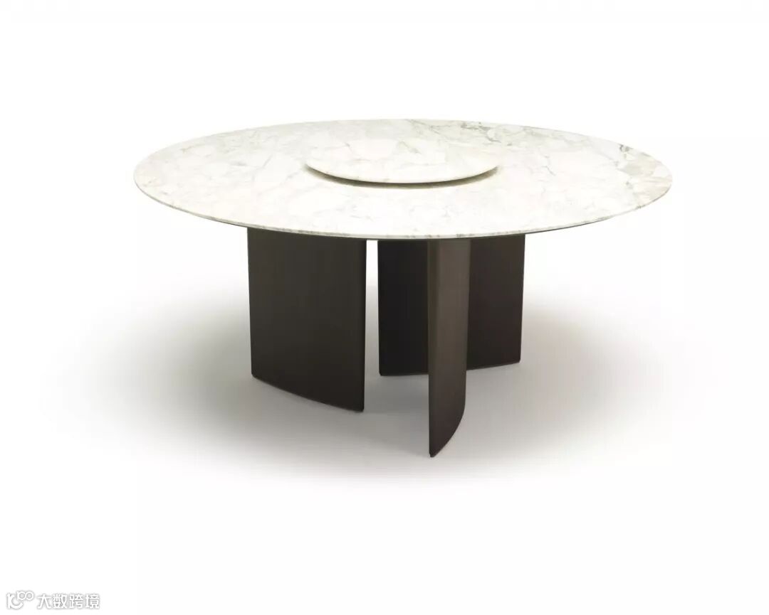 经由意大利匠人的手工打磨,Ala圆桌从中央到外延的厚度呈现曲面的纤薄,而外观线条极致圆润。最特别之处在,与中央的金属拉丝旋转盘,交相辉映,极富视觉张力,反射出亮泽晶莹的闪光效果,在最平淡的空间环境下,也能有着让人移不开目光的神奇魅力。