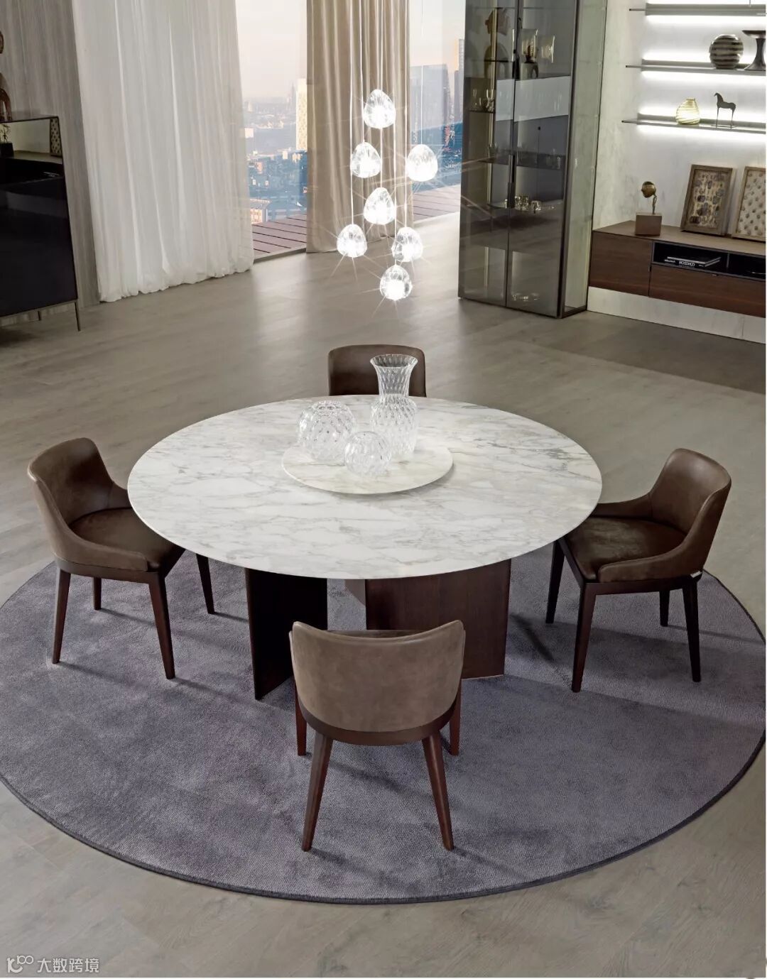 圆如满月的造型,不仅符合中国人大家庭“围坐”的饮食习惯,也蕴含着“团圆”之意。一家人绕着圆桌坐,围成一圈,其乐融融,温馨幸福。诠释出东方的生活文化与审美。