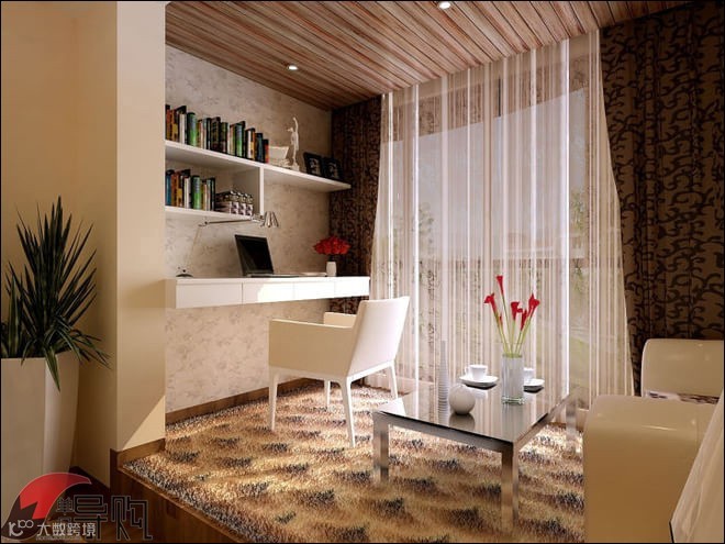 如果没有多余的房间能拿来做书房,我们可以"另辟蹊径",利用其他的空间位置,把挤在日常生活区的工作元素整合到一起。比如将阳台改造成小型书房区,也能承担收纳书籍、支持工作的角色。