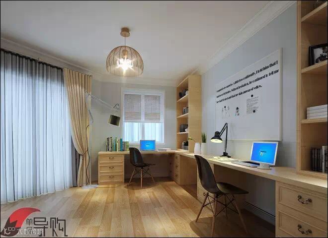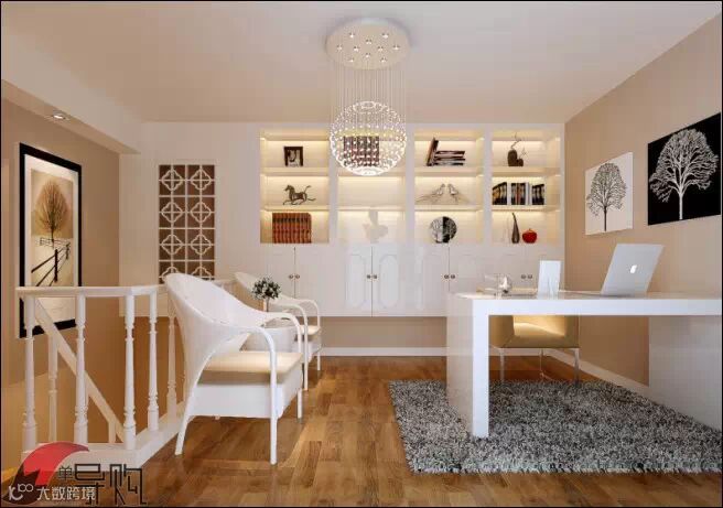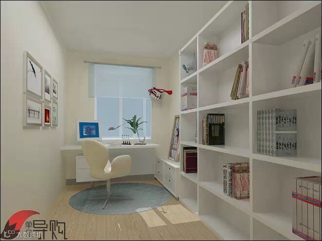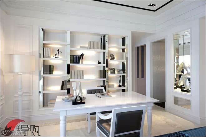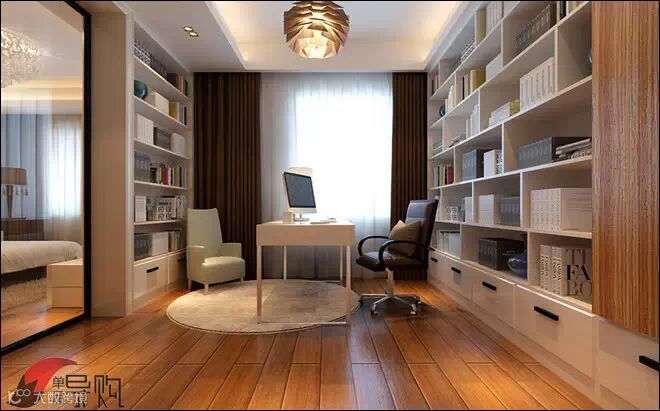 书房收纳用品,如书架、柜子、搁板等,应与整体空间选择同一色系和同一风格。