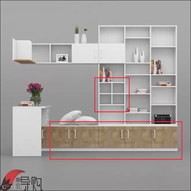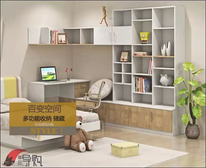 推荐理由:书柜整体线条优雅时尚,纹理简洁,书桌与书柜形成L形功能区,实现对墙面和墙角空间的充分利用。大小、位置不同、分布合理的格子、柜子与搁板,能为你各类用品找到归宿。