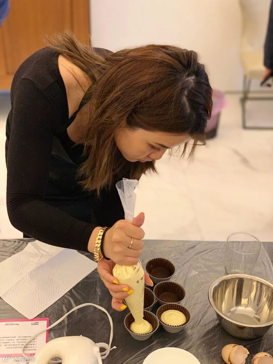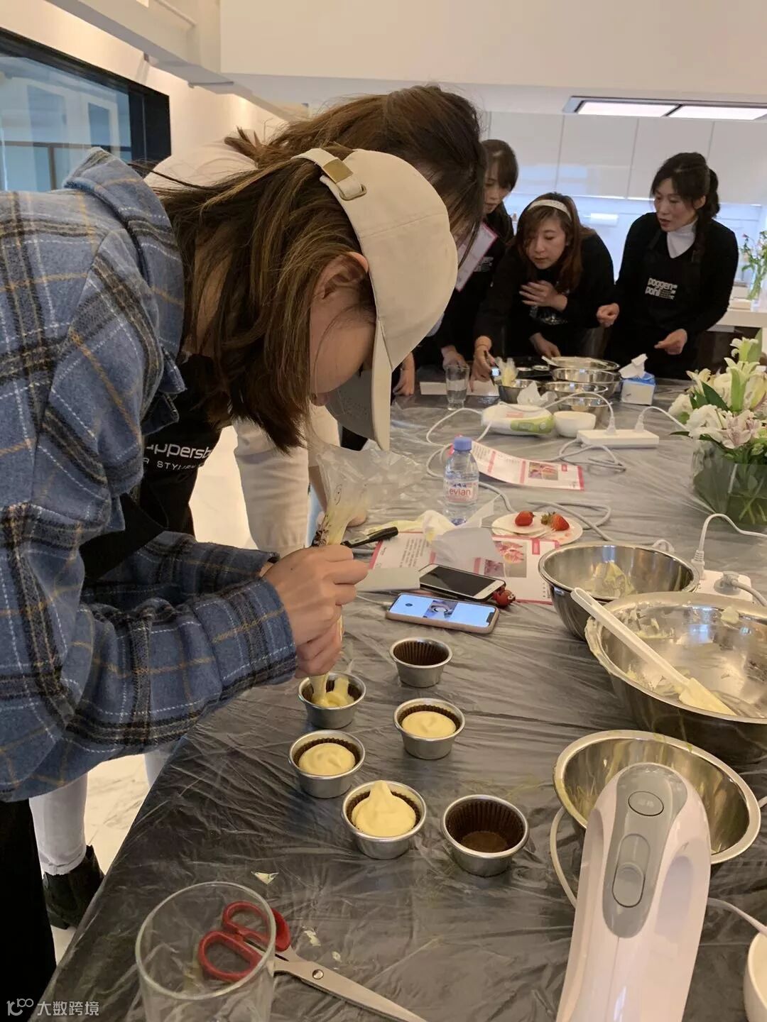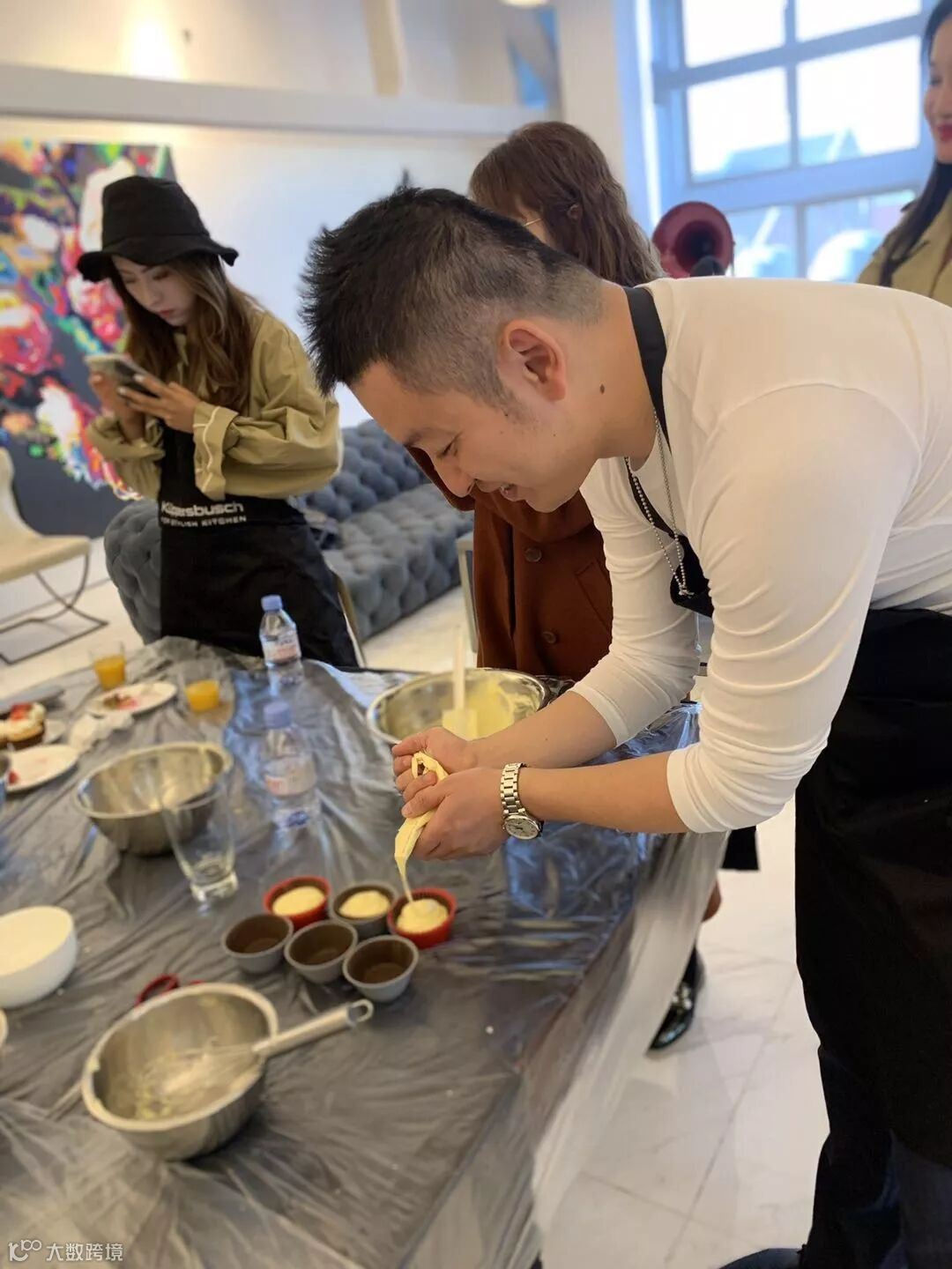 看着老师仔细讲解一个个步骤:打蛋、加糖、加面粉等等,来宾们都听得聚精会神,深怕漏掉了哪个步骤。