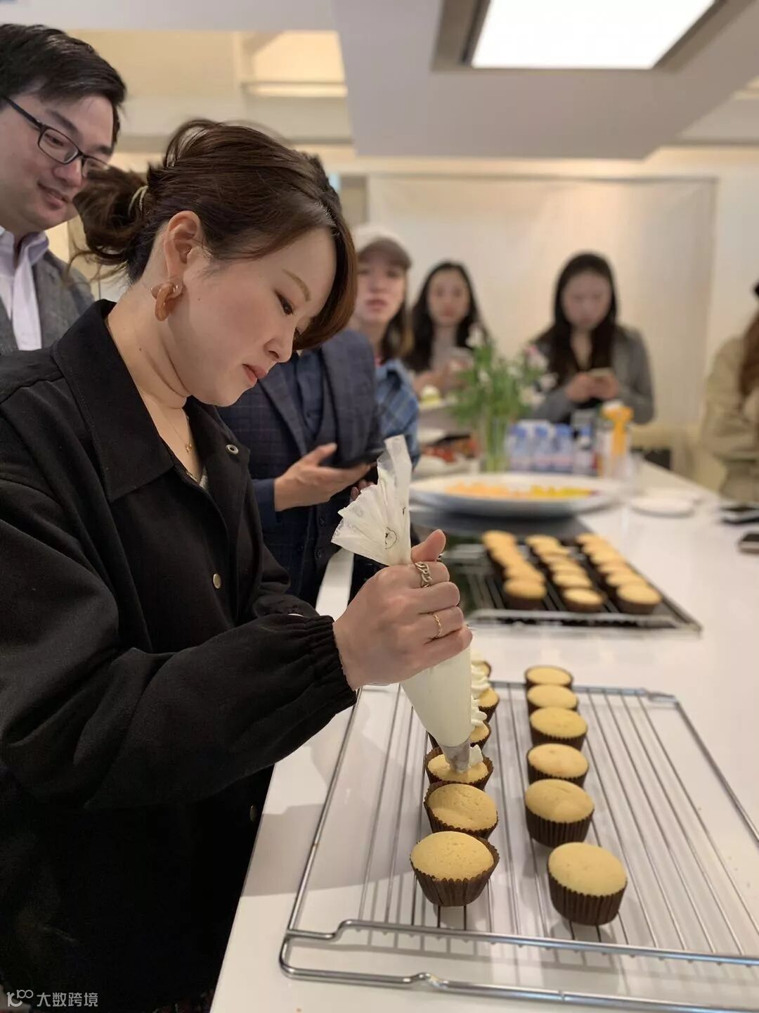 实际操作环节,嘉宾们分为6组,按照老师教的步骤,认真操作。看着自己制作的纸杯蛋糕从热腾腾的烤箱中被拿出,嘉宾们都不禁发出了“哇”的惊叹声,都迫不及待地想要一尝滋味。