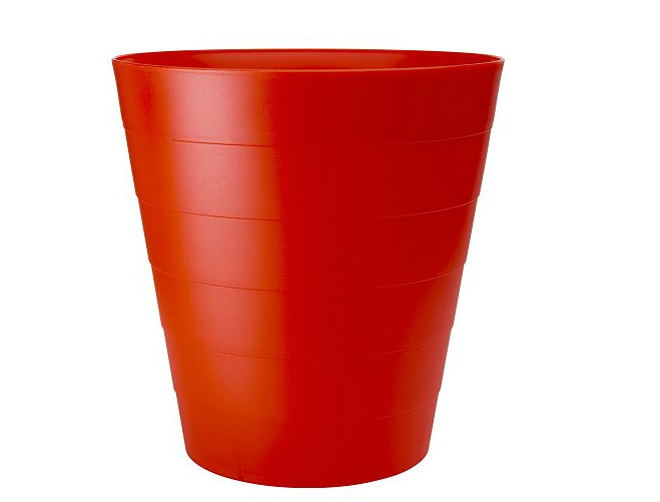有红色、白色、黑色,三色可选。经久耐用、容易清洁。前公司就用的这个废纸篓,反正快3、4年了,被300多号人扔垃圾无数,目前仍然颜色亮丽。