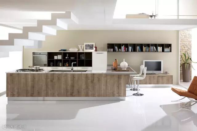 在开放式空间中,各个功能区域的合理划分与和谐共存是首要任务。意大利家具品牌Spar设计的橱柜,能让厨房和客厅无缝连接起来,更有效的整合了空间。