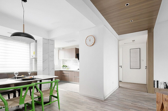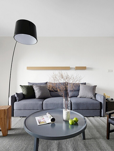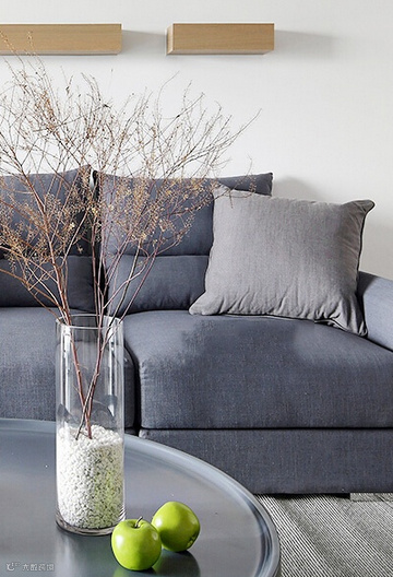 空间设计上没有太多的色彩泼墨,纯粹的白,温和的灰,天然温润的原木行走于每个区域,不同的材质交错、融合、加减,铺设出干净利索、静柔舒缓的空间氛围,偶有零星绿色做点缀,为整个空间注入了一丝清新的活力,传达出设计师一份寻求真我、回归生活【本色】的生活态度。