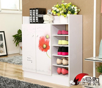 推荐理由:此款玄关鞋柜属于半开放式,实用又美观,简约时尚的外形,饰面采用进口UV烤漆和德国彩绘艺术,花朵图案非常漂亮,适合搭配简约风家居。