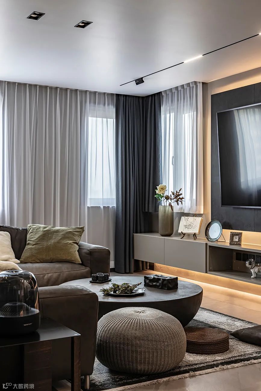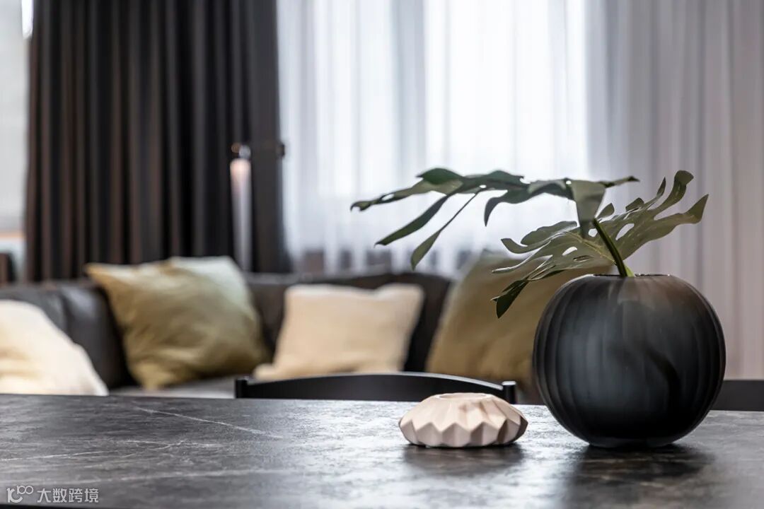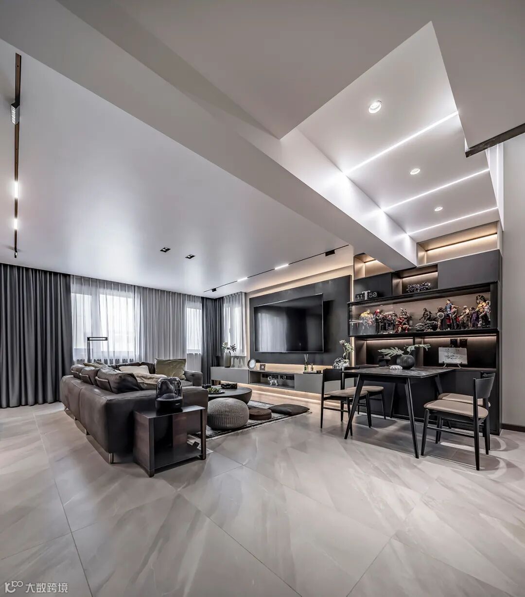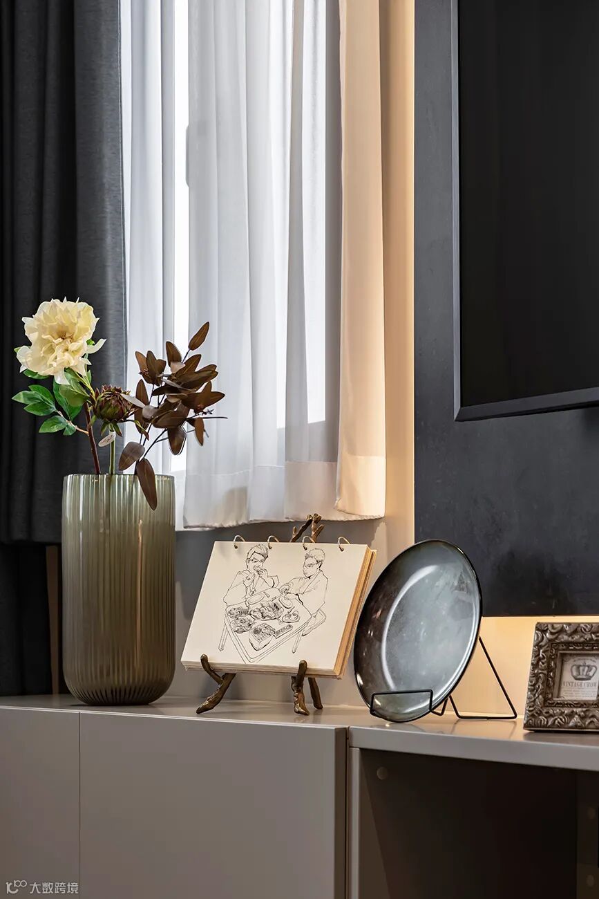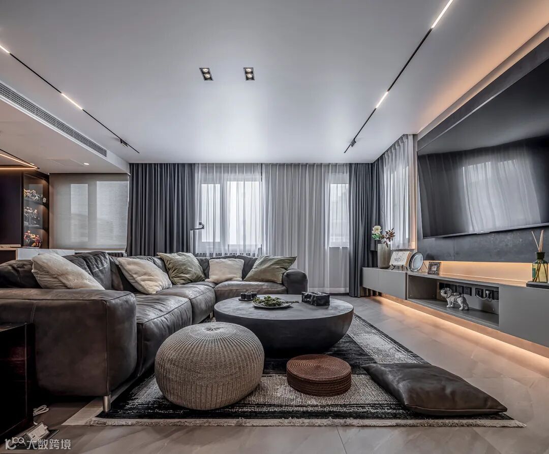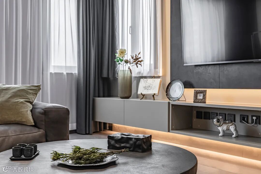客厅空间不同层次、质感灰的相遇,让看似没有温度的外表下,展露出细腻与温暖。在光的拥抱下,空间不同质感的灰呈现出丰富的表情。