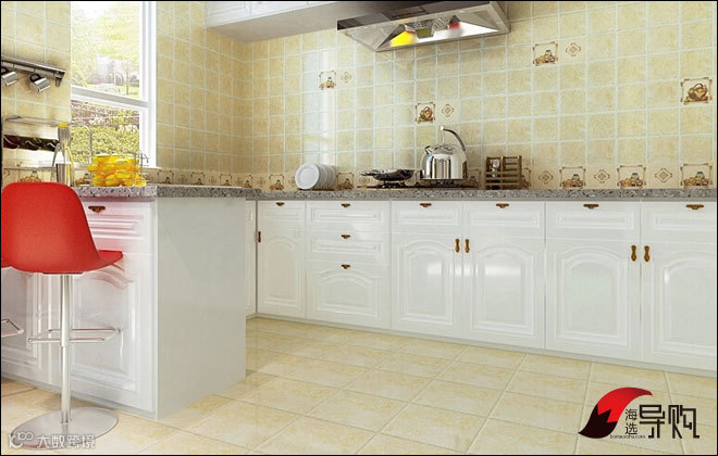厨房是油烟稍重的地方,选择防污性好的瓷砖很重要。在防滑性方面,它的要求也比客厅高。釉面砖表面为釉面,抗污能力强,防滑性强于玻化砖,很适合厨房使用。