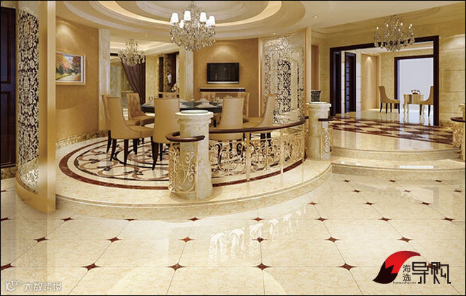 客厅是家里的门面,选择一款漂亮的瓷砖很重要。玻化砖表面打磨成镜面的效果,给人光亮如新的感觉,很适合客厅。另外玻化砖吸水率低亲水性强,遇水后更防滑,而客厅地面在清洗后人还会无可避免的踩上去,所以它们是很好的搭档。