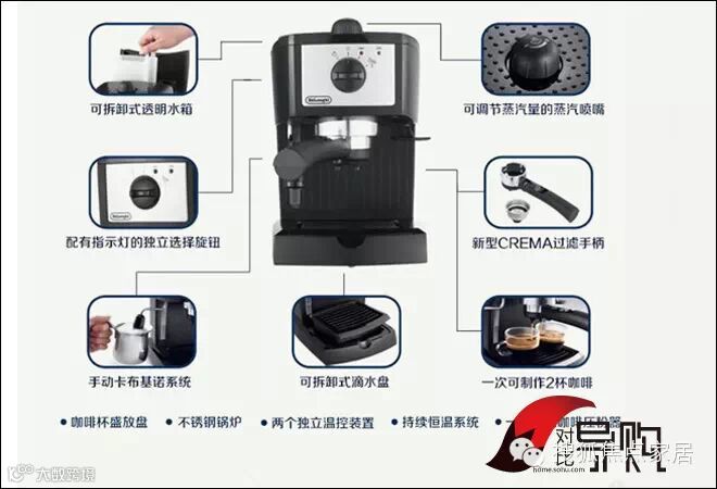 德龙Delonghi EC155独有的持续恒温装置,使机器随时可制作咖啡,2个独立的温度调节器,控制水温和蒸汽温度,新型的Crema过滤柄,过滤器,使用起来比较便利。具有卡布奇诺系统,融合空气、蒸汽和牛奶,产生细腻而丰富的牛奶泡沫,制作出完美的卡布奇诺咖啡。