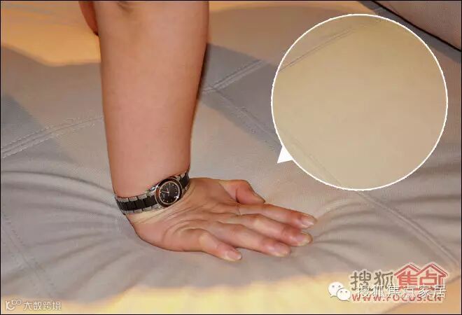 弹性材料的质量影响着沙发的舒适和使用寿命。因此,弹性材料要耐压性强、弹性好、密度高。非同家具百丽布艺沙发海绵质量较好,搜狐焦点家居小编用手按压在非同家具百丽布艺沙发坐垫上,可以看到沙发坐垫因重力下陷之后,稍稍抚平便恢复原样。