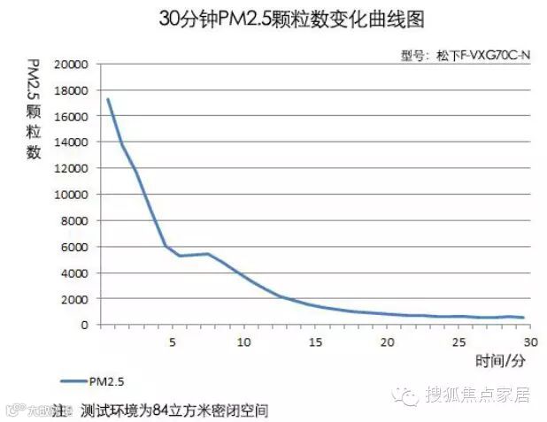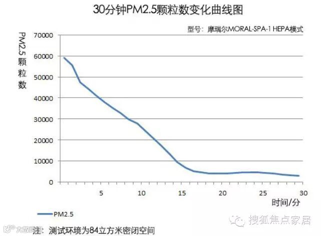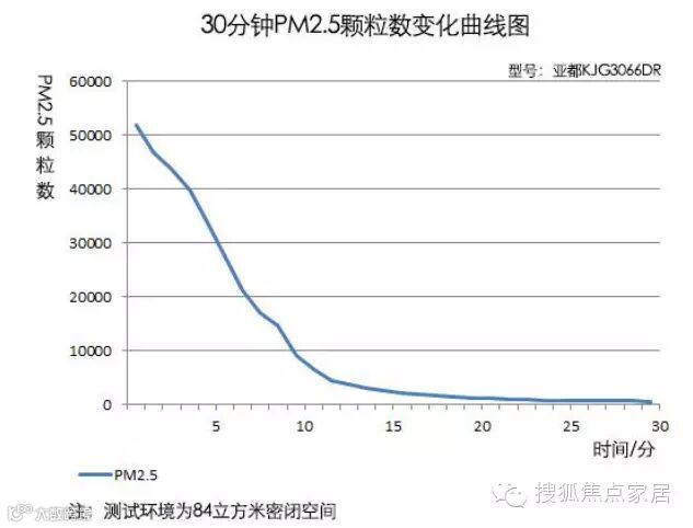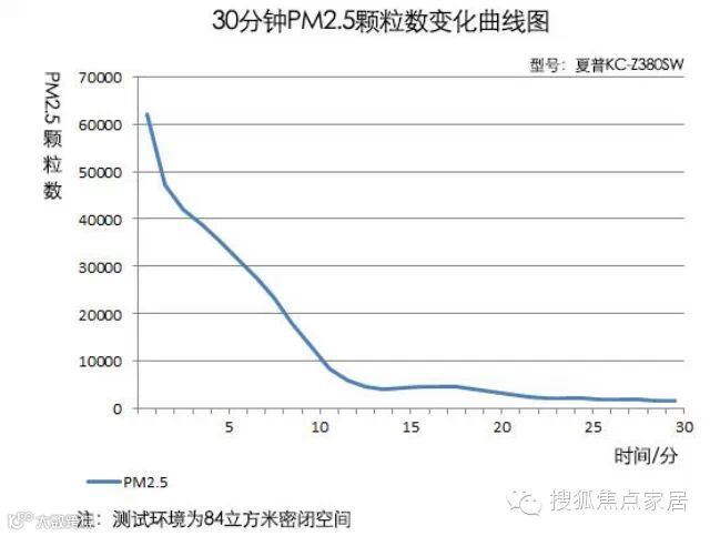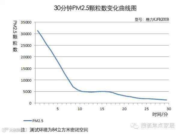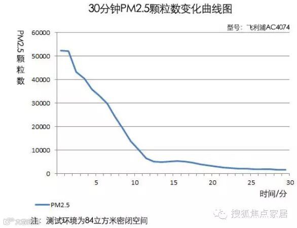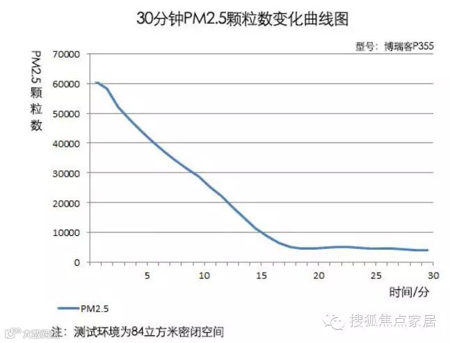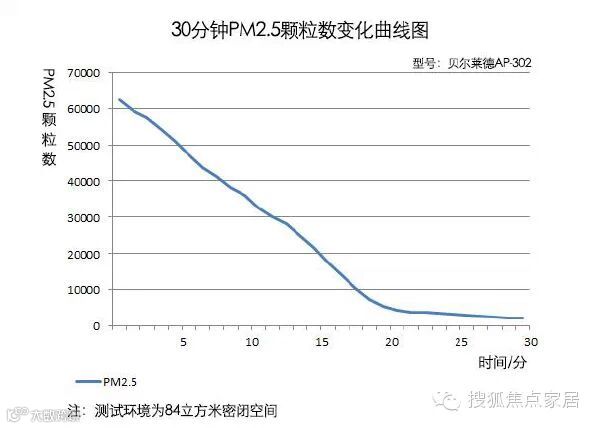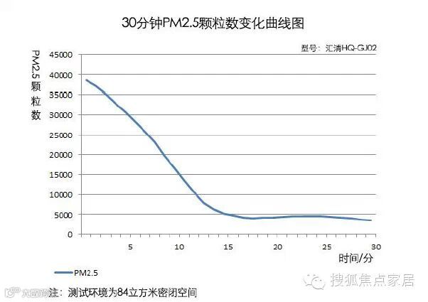 在运行8分钟左右,空气中PM2.5的颗粒数降为10000,在经过15分钟后,空气中的PM2.5颗粒数为1876。