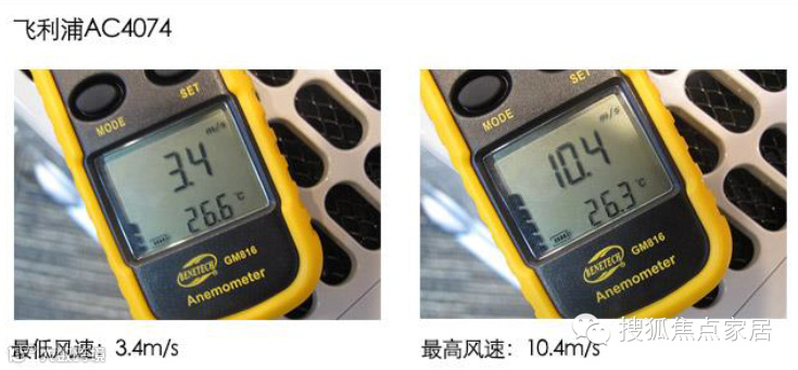 飞利浦这款产品的最低风速控制的比较高,达到了3.4m/s,可以预见,在一般状态下,它的CADR值都会非常的可观。而其在急速状态下,风速更是达到了10.4m/s,其出风量应该会比较大。