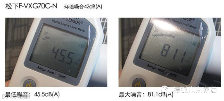 松下的最低噪音为45.5dB,和环境噪音非常接近,噪音水平比较低,最大噪音值为81.1dB,用户会感觉到比较吵闹。