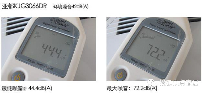 亚都KJG3066DR的最低噪音为44.4dB,基本就是环境噪音,噪音值非常低,日常使用体验比较好。而且最高噪音为72.2dB(A),稍显吵闹。