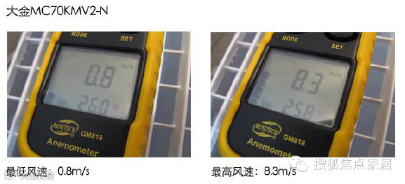 大金的最低风速和最高风速分别为0.8m/s和8.3m/s,低风速表明了此产品在平时状态下的噪音控制应该非常不错。