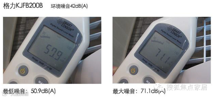 格力这款产品的最低噪音50.9dB,和42dB左右的环境噪音相比,还是有一定的距离的,噪音值稍高。其最高噪音为71.1dB,表现较好。