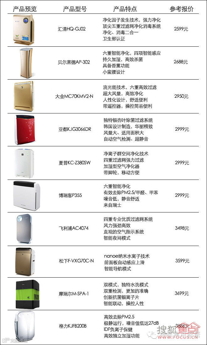 随着空气质量问题的热议,空气净化器也随之热了起来,相关产品就如雨后春笋一般,迅速充满了市场。那么,究竟哪些品牌或者哪些产品比较好?相信很多人都比较迷糊。不知道不要紧,这次搜狐焦点家居就搜集了目前市场上10款主流的产品进行对比评测,相信通过对比之后,能够解答大家的疑惑。