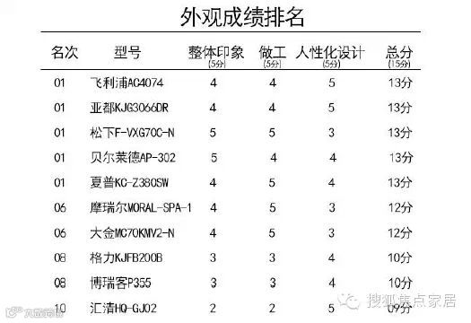 外观评分:整体印象5分 材料工艺5分 人性化设计3分 总分13分