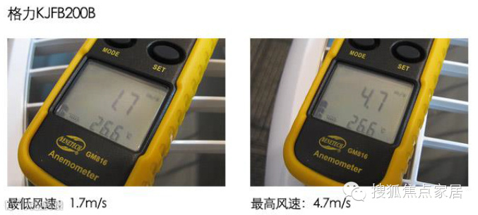格力KJFB200B的最低风速为1.7m/s,最高风速为4.7m/s。最高风速值很低,估计其出风量不会很大,CADR值应该不会很好。