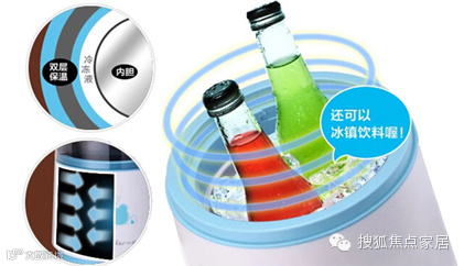 由于小熊冰淇淋机BQL-A08A1采用内胆、冷冻液和双层外壳的结构,其也可以充当冰桶,用于冰镇饮料、奶茶等等。
