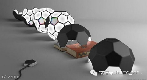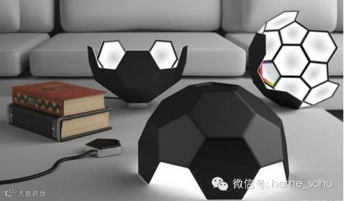 这是一款由设计师Simon Enever精心设计的一款照明灯,足球立体形提供了多面照明角度,提高了整体照明效果。足球都是由一个个正六边形组成的,细心的Simon Enever把开光装置也设计成六边形,与灯融为一体。