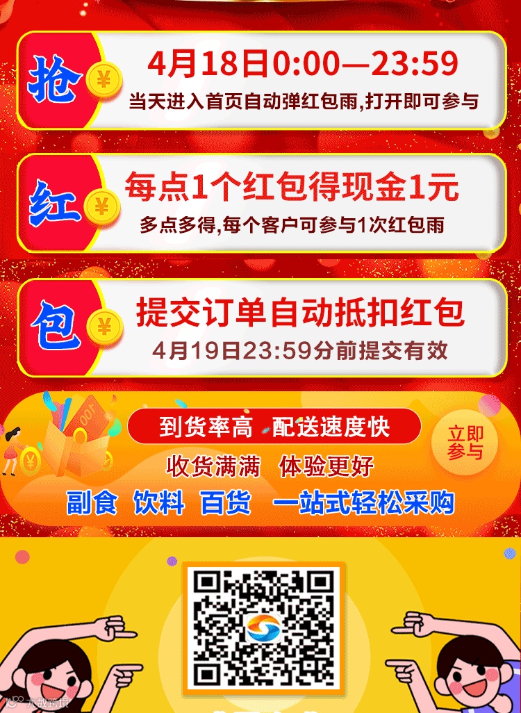 导读:4月12日-4月30日,订单抽奖/自提返现/红包雨/签到有礼,好运好礼等着您~