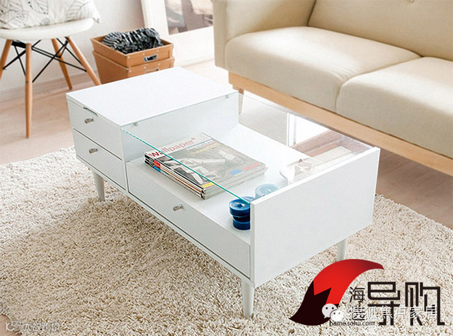 择木宜居小茶几通体为白色,带着一点小资情调,主要是E1级环保板,木质一般,使用寿命不会太长。有一大两小3个抽屉,可以收纳平时不用的 物品,加上上面有覆盖着玻璃的储物柜,可以放置杂志,杯具等物品,美观也实用。小抽屉的上方盖子可以掀开,内置一面镜子。您可以将化妆品放在下面的抽屉中,掀开盖子便可以对着镜子化妆,非常方便。