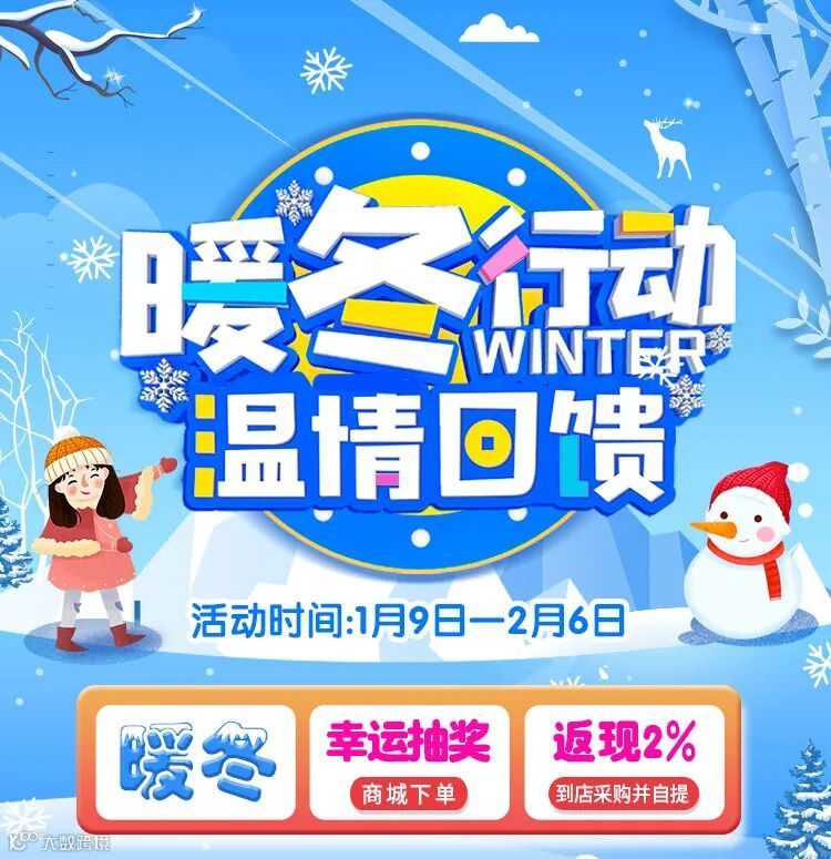 导读:1月9日至2月6日,商城下单满2000元可抽奖,上门采购自提返现2%,多购多返 幸运100%
