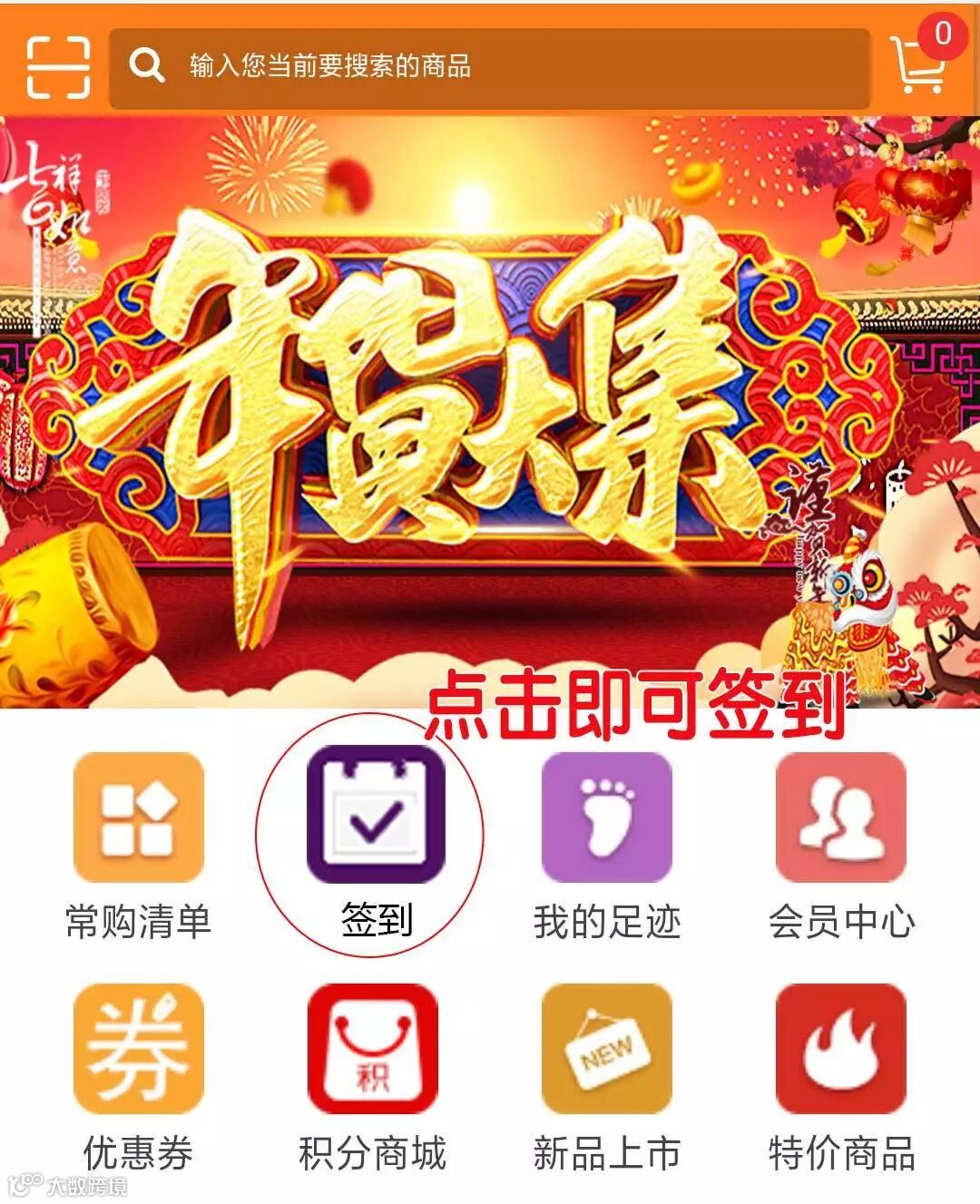 商城首页找到签到图标