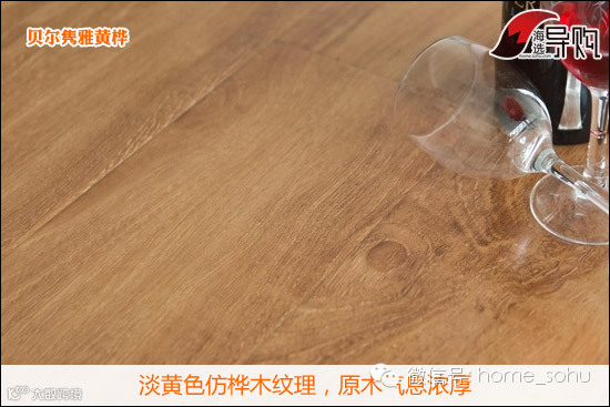 本款地板色泽较为平实,呈淡黄色,适用于普通的中式家庭。采用桦木纹理的装饰纸,地板整体看起来清新自然,很有原木的味道。