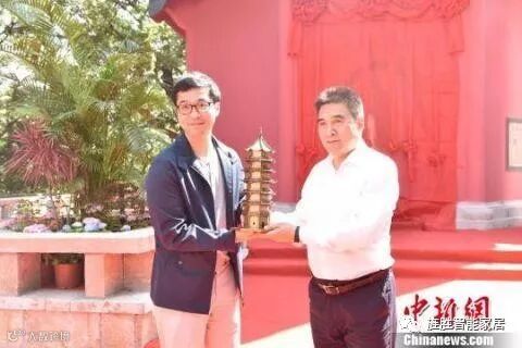 当天,无锡市惠山古镇景区举行龙光塔修缮项目竣工仪式。仪式现场,无锡市领导向荣氏家族代表赠送了龙光塔纪念模型。