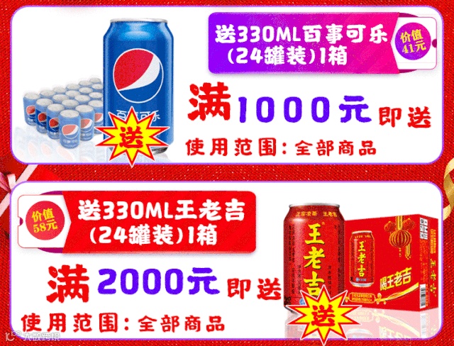 恭喜你成为幸运客户!送你可乐、王老吉各1箱
