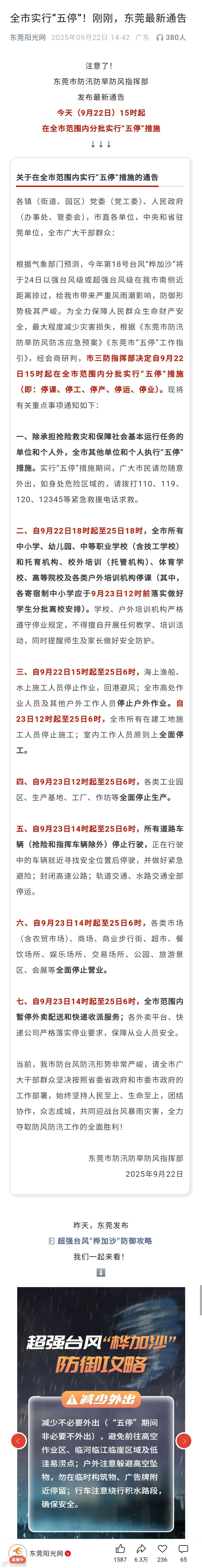 应三防指挥部要求:9月23日下午至9月24日暂停营业和配送,9月25日开始正常营业