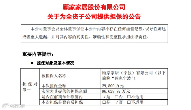 临近年末,家居上市公司为子公司提供担保的公告密集发布。仅12月以来,已有顾家家居、箭牌家居、欧派家居、蒙娜丽莎、尚品宅配等五家行业知名企业先后披露相关担保进展或计划,涉及担保额度累计已超百亿元,反映出行业在岁末资金需求旺盛,母公司通过担保方式支持子公司业务发展的常态化趋势。