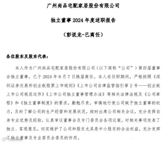 4、尚品宅配:副总裁欧阳熙及独立董事彭说龙离任