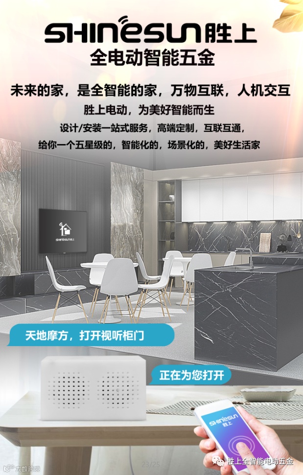 1、胜上电动,提供全屋智能电动五金的整体解决方案。产品互联互通,形成智能化,场景化,为全屋高端家具定制,提供一站式配套落地服务。