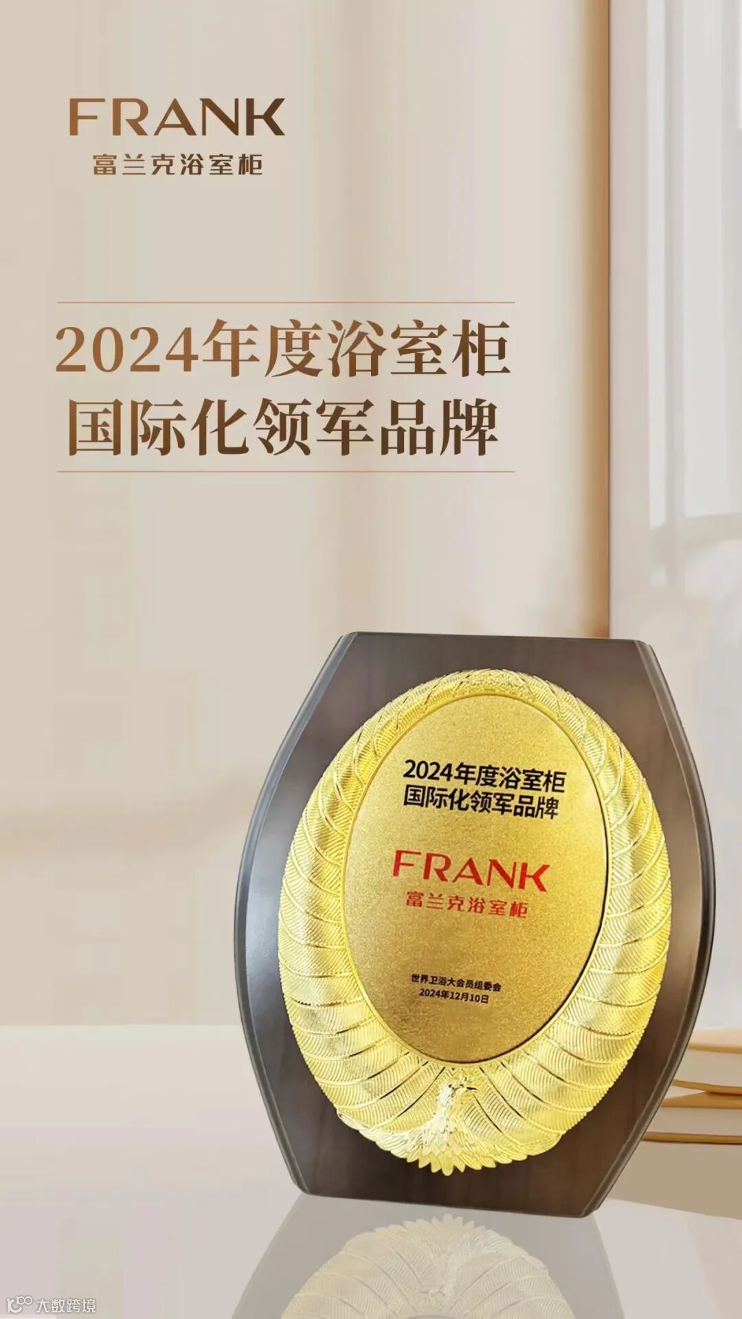 总结:2024年,富兰克浴室柜凭借其卓越的创新力、品牌影响力和全球化战略,继续引领行业发展,塑造了更加辉煌的未来。公司将继续深化原创设计和技术创新的双轮驱动战略,推动绿色环保技术的应用,为行业的可持续发展贡献力量。同时,富兰克也将进一步强化全球化布局,通过多元化的业务模式,为全球消费者提供更加高品质、个性化的家居解决方案。随着全球化战略的不断深入,富兰克的品牌影响力将进一步提升,成为全球家居行业的重要力量。富兰克荣获“2024中国家居行业价值100公司”实至名归。