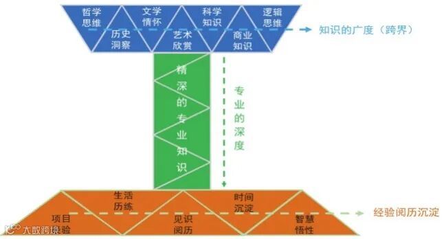知识跨界:知识面的广度直接影响思维跨界能力、整合思考能力等, 是“工”型人才的思维宽度;
