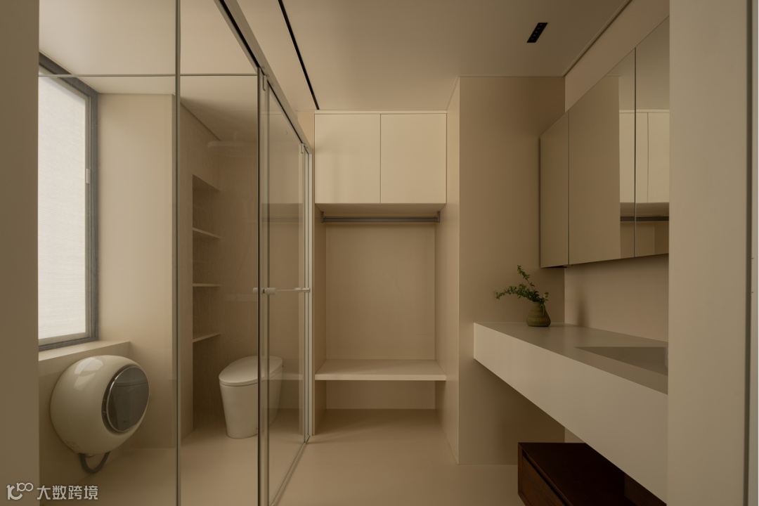 三分离卫浴延续整体框架,退让色彩纯度,回归最本质的肌理感。设计深入业主日常习惯与需求,升级过道空间的应用,为每一个晨起与入眠调度流畅舒适的动线体验。同时为宝宝预留专属的小洗衣机,落地更实际的生活需求。