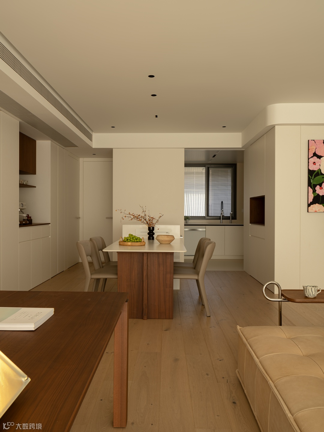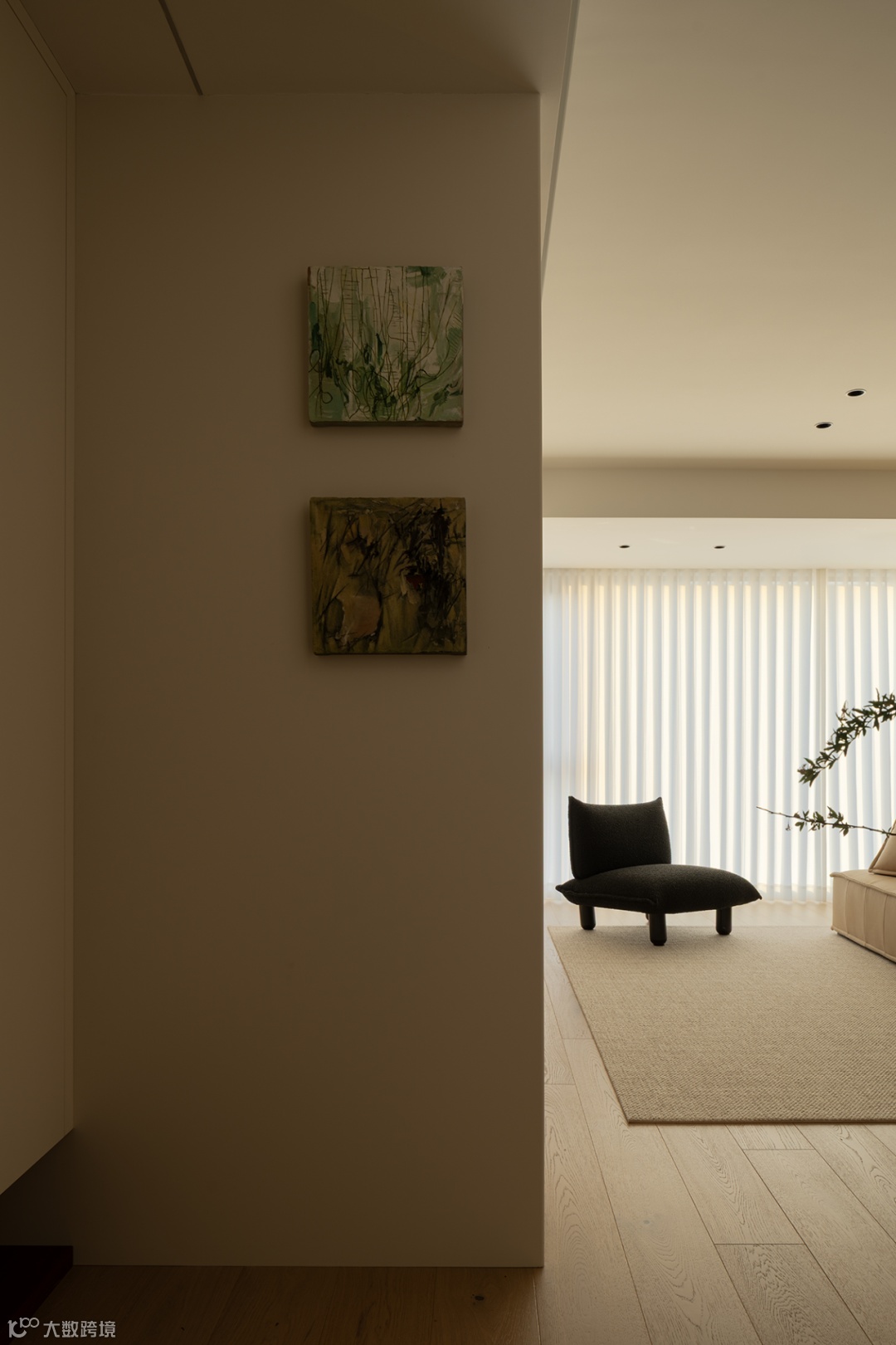 在润白的平铺直叙中,捕捉一抹来自春天的灵动绿意,焕活一室生动。端景绿植调度着画框与空间的虚实,画境与意境相协,于此润物细无声地萌芽、生长。