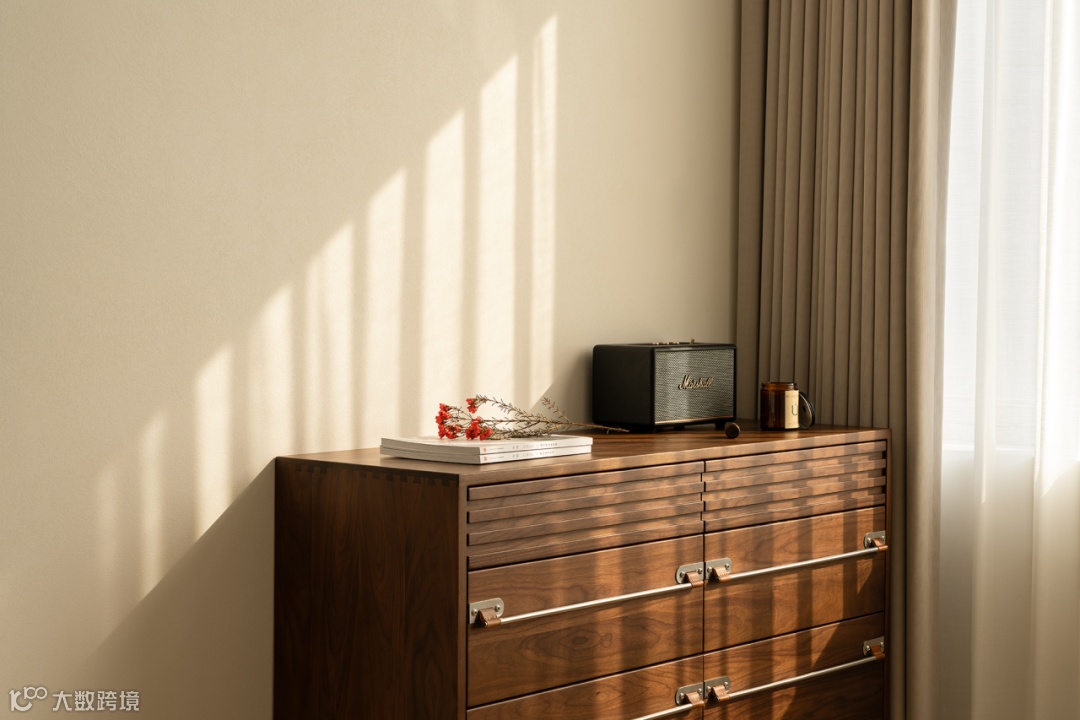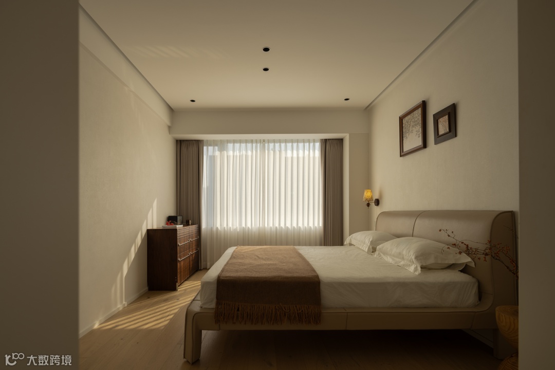 次卧关照内心更细腻的情感,光束勾勒清晰轮廓,为人与空间建立一场难以言喻的默契与和谐,在仪式和舒适感中,陪伴悠然入梦。