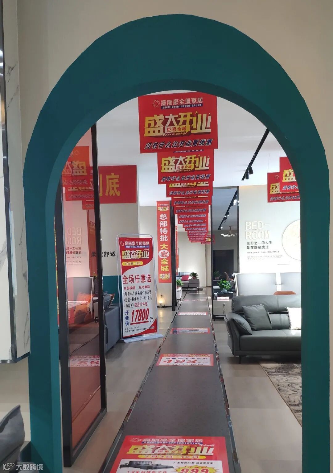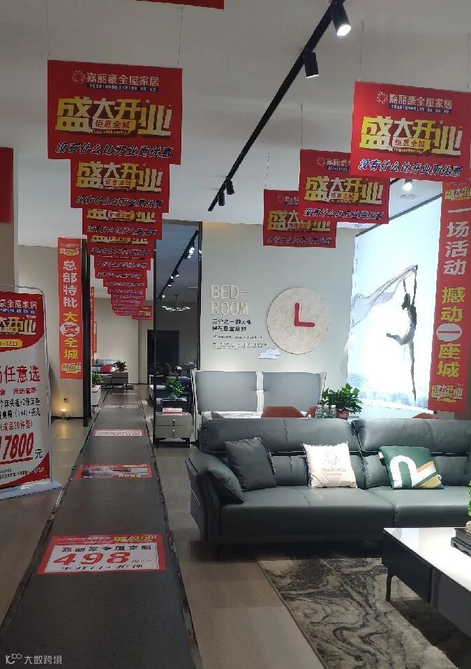 门店的装修风格和软装搭配等都和全新的嘉丽豪全屋家居展厅设计保持一致,色调清爽自然,丰富的活动物料将开业氛围烘托到极致。