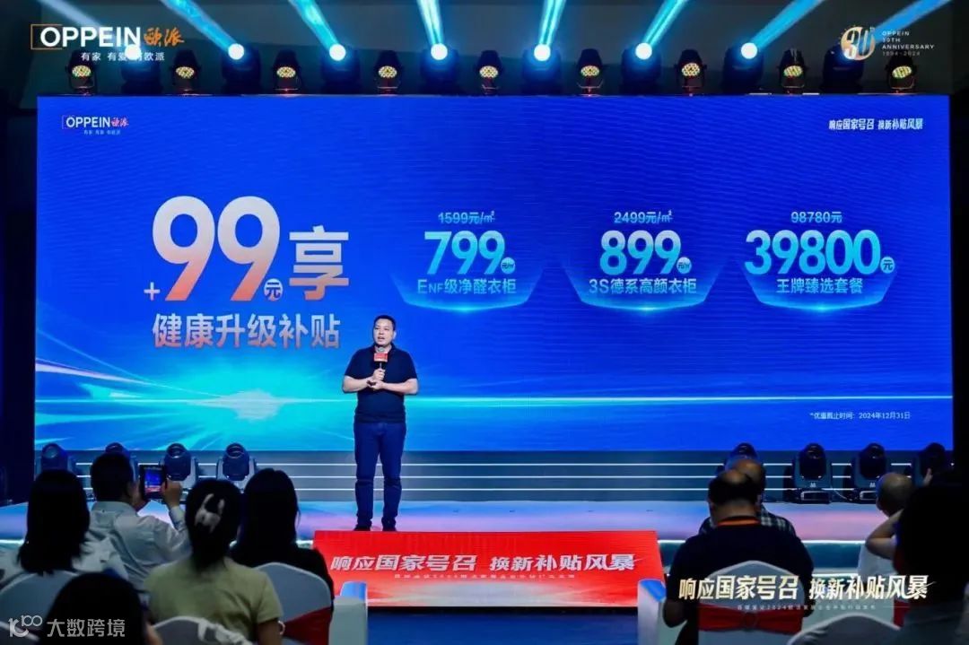 欧派家居作为行业领军企业,率先在2024年9月推出了加码20%的企业补贴政策,积极响应国家“以旧换新”号召。其“换新补贴风暴”活动中,欧派推出了诸如“消费者+99元享健康升级补贴”的优惠,目标是通过政企联合,推动衣柜、橱柜等产品的升级换代。消费者不仅可以享受国家的补贴,还能在购买欧派定制类产品时获得合同金额20%的补贴,单户最高补贴金额可达1万元。